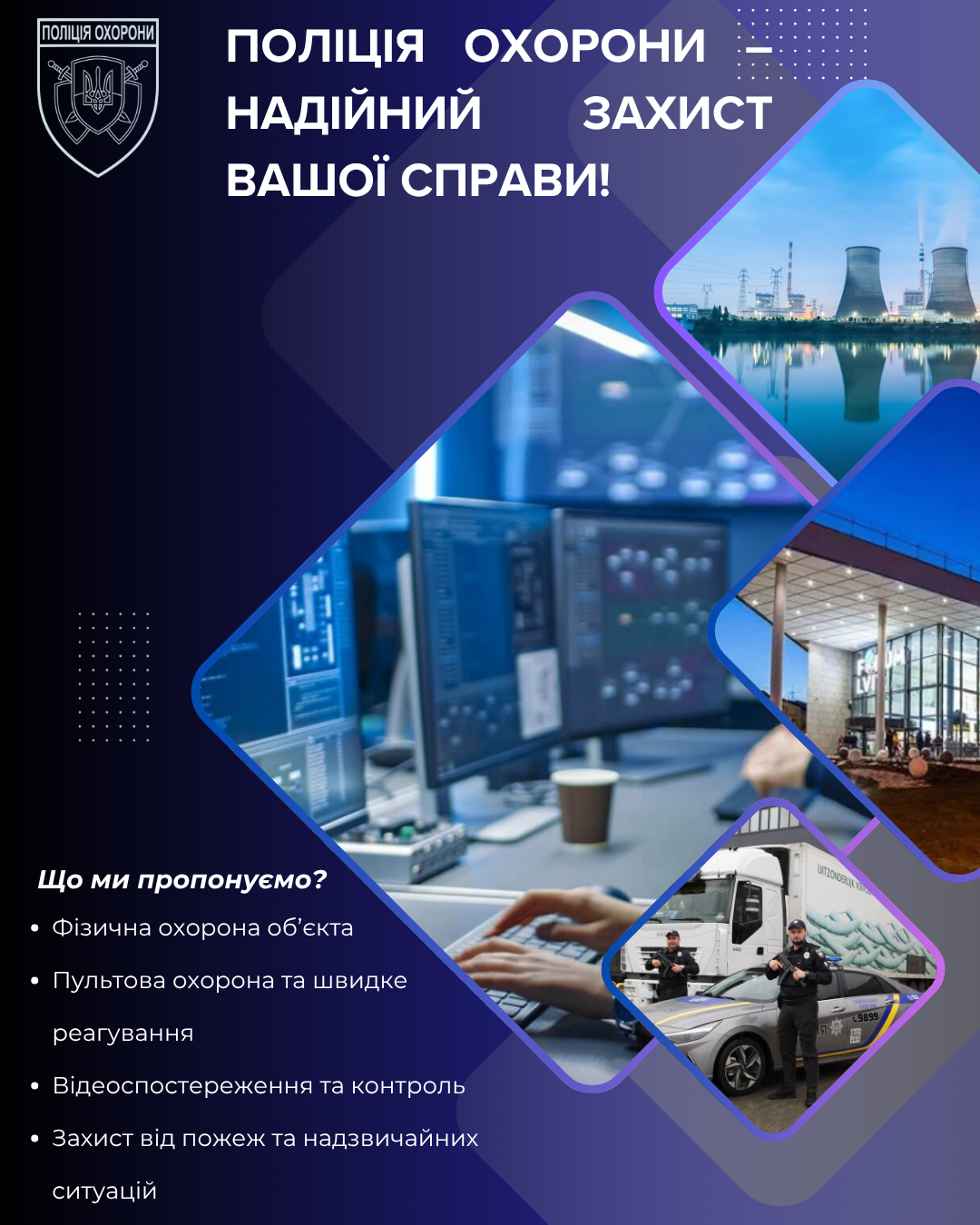 Ми не чекаємо, поки щось станеться, а попереджаємо загрози. А якщо небезпека все ж виникає — поліція охорони вже на місці. Готові. Рішучі. Надійні. Захист, якому можна довіряти. Поліція охорони — коли безпека має значення. Подбайте про безпеку вже сьогодні.
