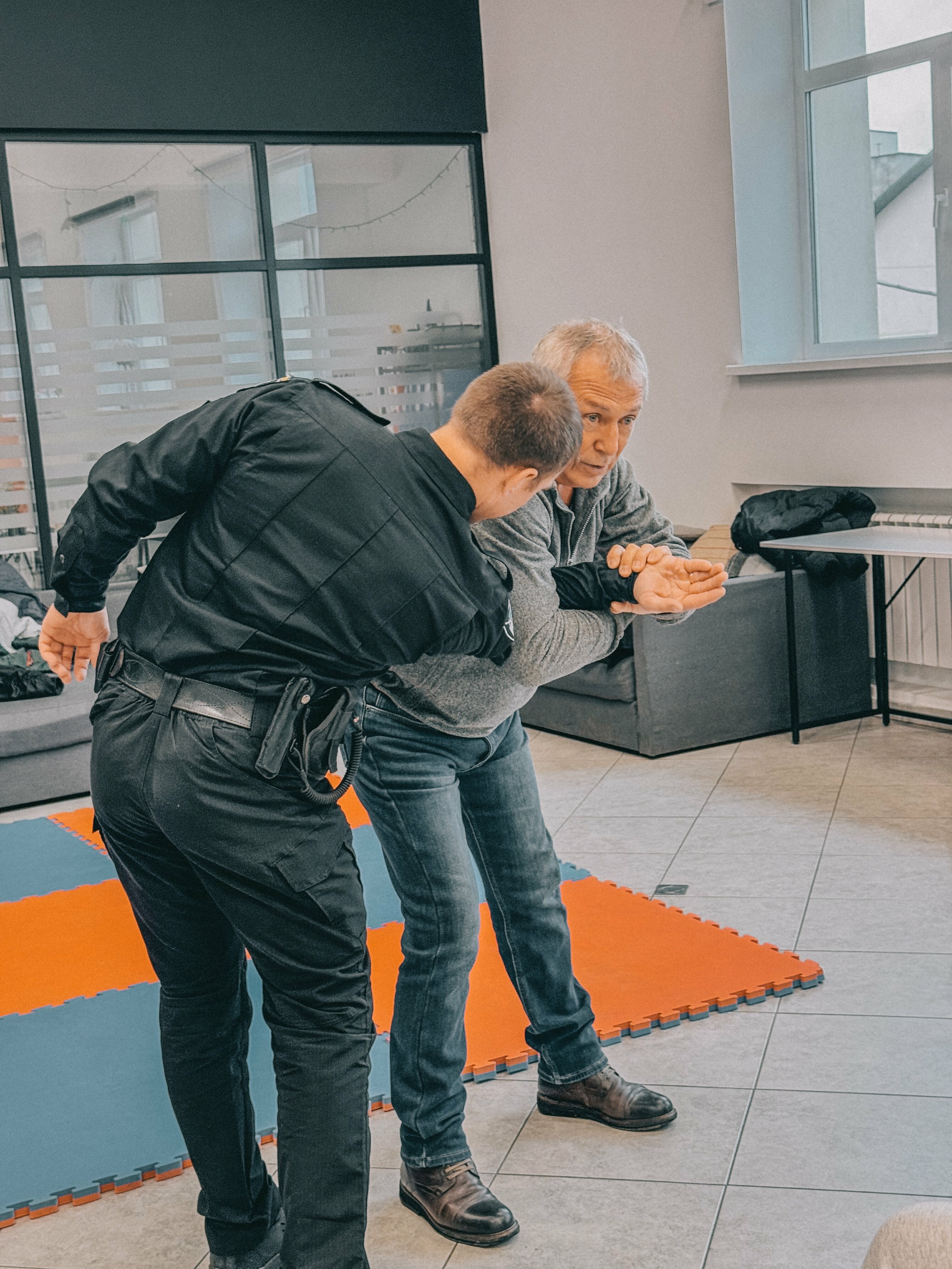Далі відбувся практичний урок самооборони. Під керівництвом досвідчених інструкторів жінки навчалися базових технік звільнення від захватів, ефективних прийомів самозахисту та способів уникнення потенційних загроз.
