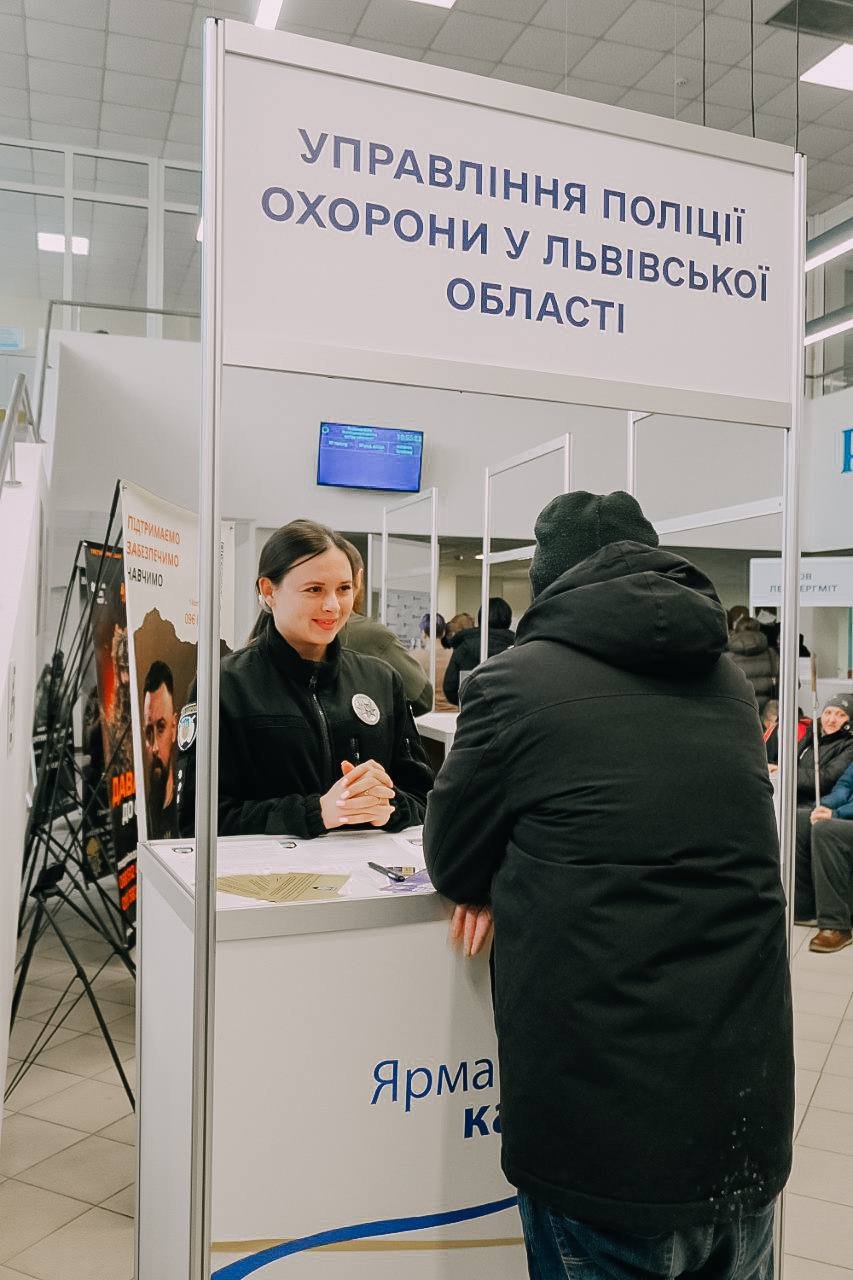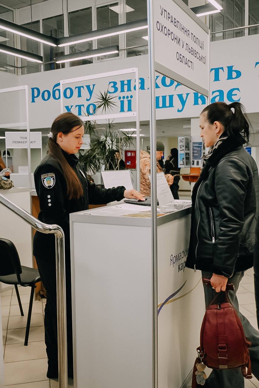 У Львівському міському центрі зайнятості відбувся ярмарок вакансій, який об’єднав десятки підприємств та організацій різних сфер діяльності. Серед учасників події було й Управління поліції охорони у Львівській області.