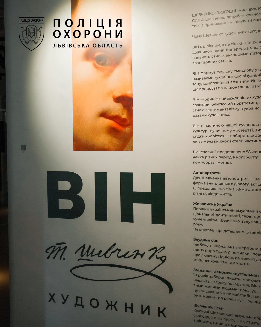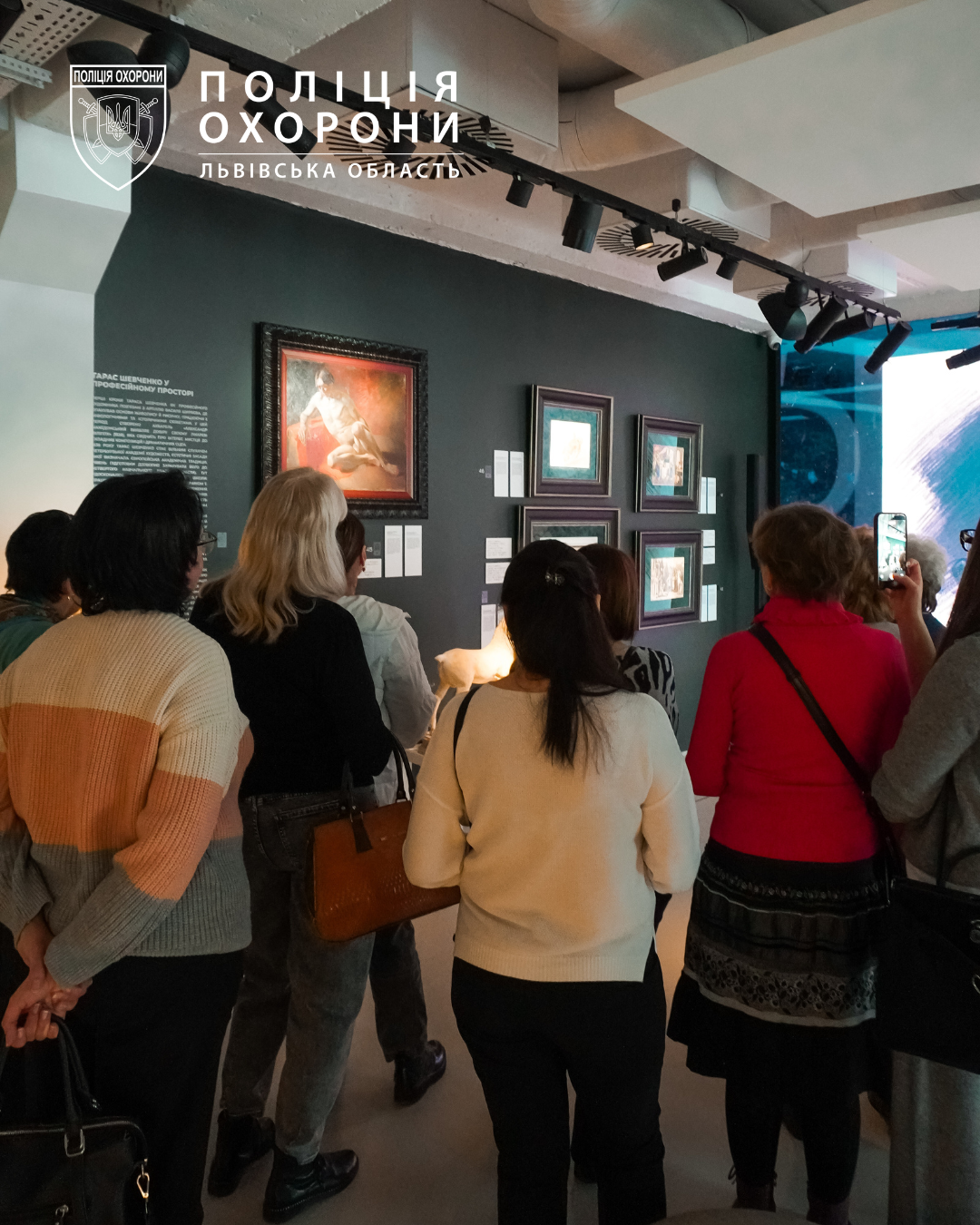 Цього дня співробітники Управління поліції охорони у Львівській області відвідали виставку «ВІН: Тарас Шевченко. Художник», що експонується у Zenyk Art Gallery. Експозиція об’єднала 58 оригінальних живописних і графічних творів митця з колекції Національний музей Тараса Шевченка.